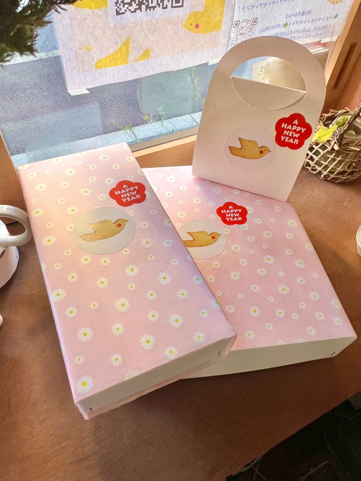 通販ではなく店舗で受取りたい方は公式LINEまたはお電話(080-6522-4297)へお気軽にご連絡ください。その場合もちろん送料はかかりません。オカメサブレは箱入りでも1羽でもご予約いただけます。ご予約なしでもご購入いただけますが、万が一在庫切れということやお待たせすることなくお渡しできるのでご予約をおすすめしております。