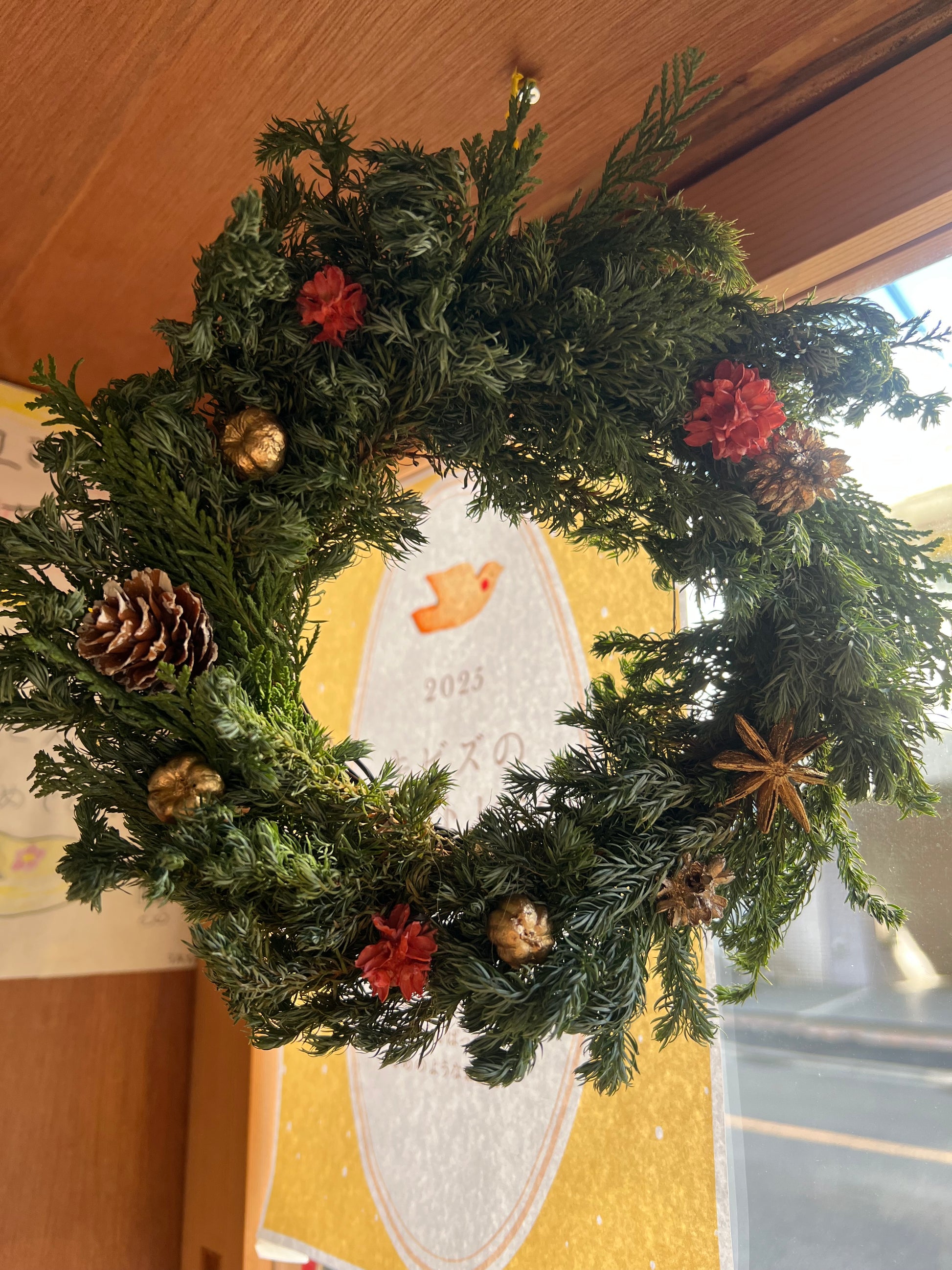 毎年ご好評いただいているロスフラワーのヒバを使用したかおりの良いリースです。製作は今年もフラワーサイクリストの中村佳世さんにお願いしています。能登半島でのワークショップや保育園での花あそびなどいろいろな場所でお花を通してたくさんの人とかかわる活動をされています。優しい雰囲気なのに行動がパワフルで大好きな方です。